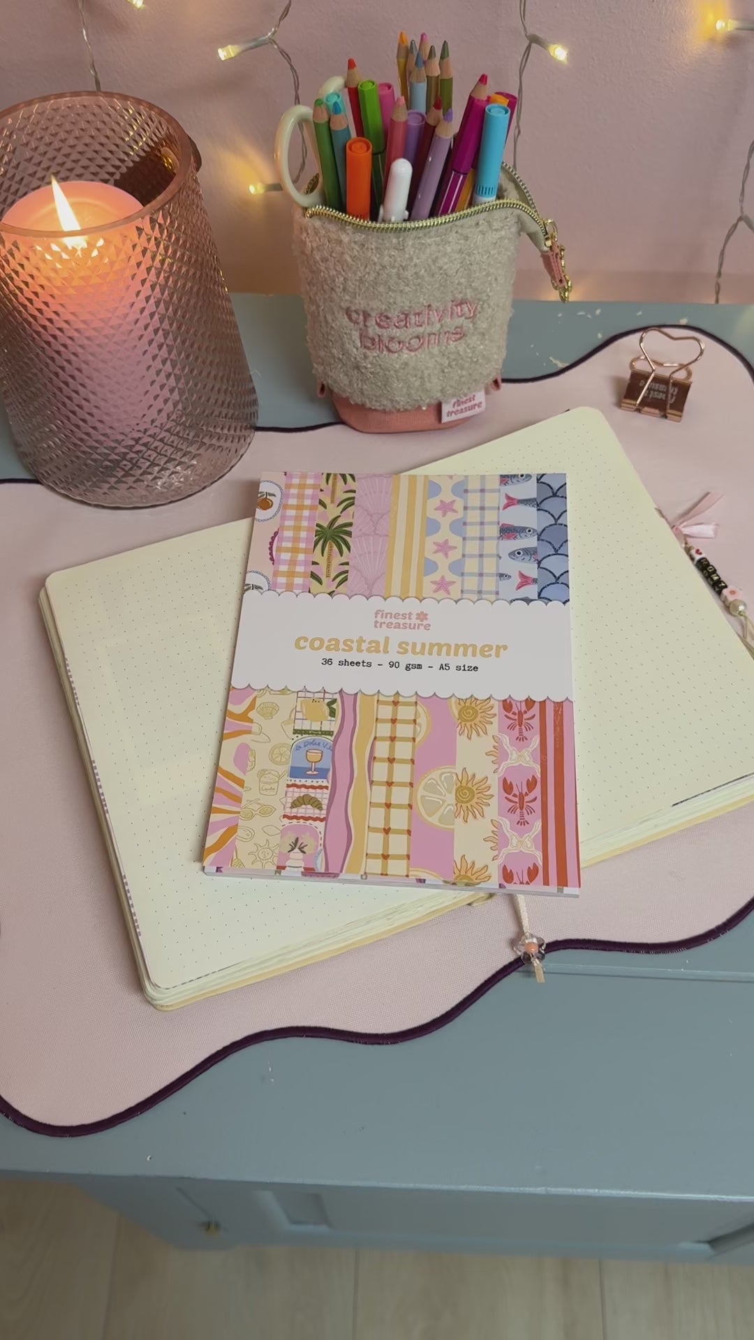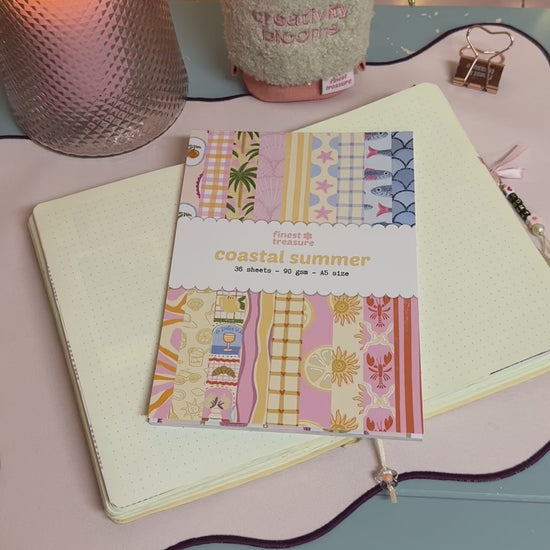 Cet ensemble contient 8 designs uniques dans des tons pastel joyeux. Parfait pour le scrapbooking, le journaling et plus encore. Des palmiers et des coquillages aux étoiles de mer adorables et aux illustrations ludiques.